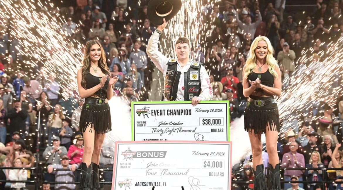 In an exhilarating night in Jacksonville, Florida (USA), the talented competitor John Crimber achieved his long-awaited victory in the elite ranks of PBR, etching his name onto the rodeo scene. The young prodigy, after three second-place finishes in the last five weeks, finally clinched the top spot, standing out in the Final Round with an impressive score of 91.00 points on the bull Doze You Down.